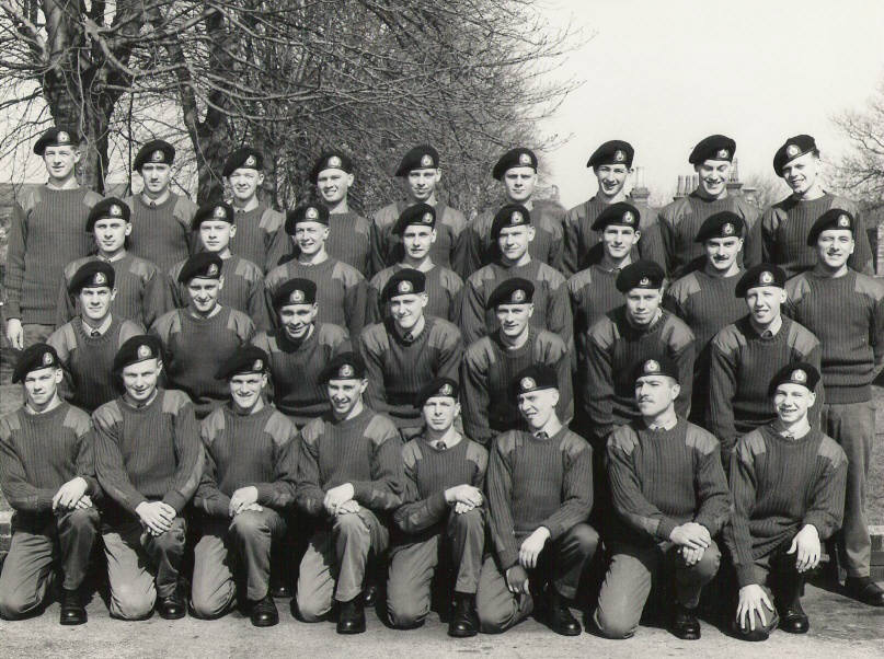 This picture was taken during my 6 weeks of basic training at Deal (Kent) April - May 1969. I'm second row down & third in from the right. I actually did 8 weeks in total because I was back squaded once, due to an inability to get to grips with the use of my rifle. When I joined the new squad it just clicked and I sailed through. We then went to Lympstone (Devon) where we had to jog every where we went. As I considered myself to be a pretty good runner anyway that did'nt bother me to much. The result was though,that besides eating constantly, we would sometimes get very tired and would make the most of all the sleep we could get. The training here at Lympstone was designed to last for 20 wks, culminating with the completion of the Commando Course to aquire the Green Beret and pass out as a fully qualified Royal Marine Commando. I chose though to take the option (given when joining) of being able to leave at the end of 3 Months training with a payement of £20. The alternative given was to serve for 9yrs + 3yrs as a reservist. It's easy to look back and say, what if Il'd stayed, but thats not something that Il'd normally dwell on at all. You have to make a choice at the time, and then move on. |
